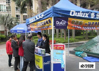 場(chǎng)地選擇應(yīng)為小區(qū)人氣最旺的廣場(chǎng)或必經(jīng)的過道。