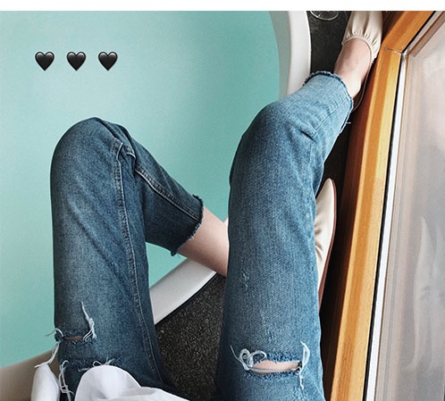 6.顯瘦破洞剪邊直筒牛仔褲,想自留一打的褲幾~真的版型敲棒! 破洞設(shè)計很加分版型很正~搭配襯衫T恤都o(jì)k!剪邊設(shè)計 很簡潔~直筒褲的版型 很遮肉喔!顏色很正 閉眼入~