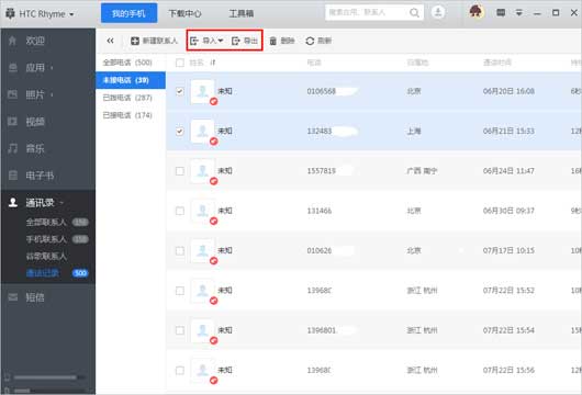第三步:導(dǎo)入/導(dǎo)出通話記錄有各種格式,點(diǎn)擊“我的手機(jī)=》通訊錄=》通話記錄”就可以選擇對全部或已接電話,未接電話,已撥電話記錄的導(dǎo)入/導(dǎo)出。